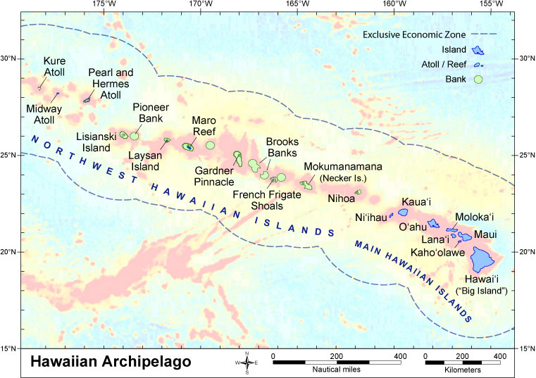 A larger version of the rendered map above (top) can be found here: Hawaiian Islands Map.